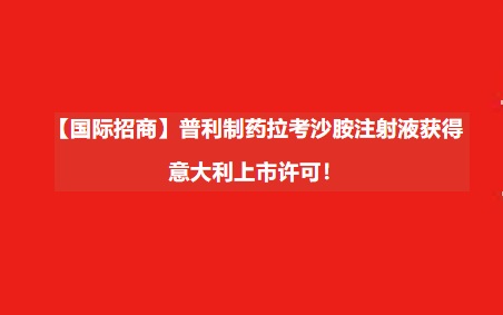 【国际招商】普利制药拉考沙胺注射液获得意大利上市许可!