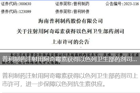 Poly Pharmaceutical Obtains Market Approval for Azithromycin Injection in Israel, Further Securing Antibiotic Supply